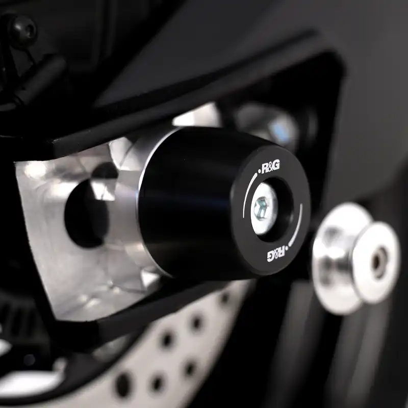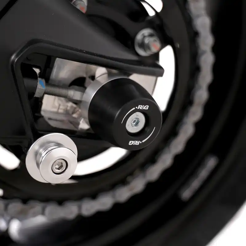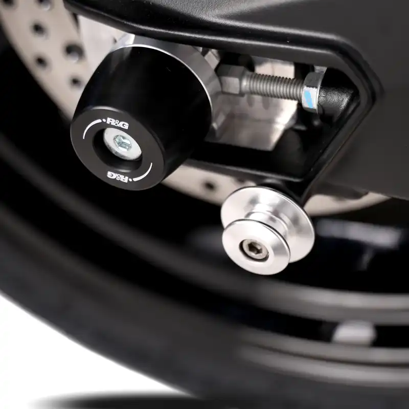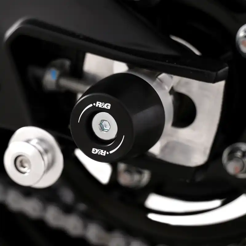 The R&G swingarm protectors provide protection for vulnerable rear end components in the event of a crash, drop or slide. Replaceable High-Density Polyethylene (HDPE) bobbins are used for superior impact and abrasion protection that helps slow the motorcycle to a smooth, controlled stop. This essential protector will keep valuable components off the ground to prevent some seriously expensive repairs after a fall. Installation is simple with no permanent modification to the bike needed.