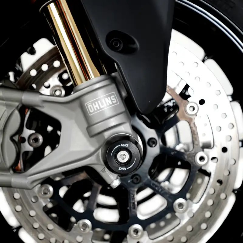 These APEX Fork Protectors are suitable for the Ducati Streetfighter V2 S '25-, Panigale V2(S) '25- & Multistrada V2 '25-, same dependable protection, new tapered-style bobbin.