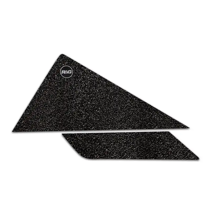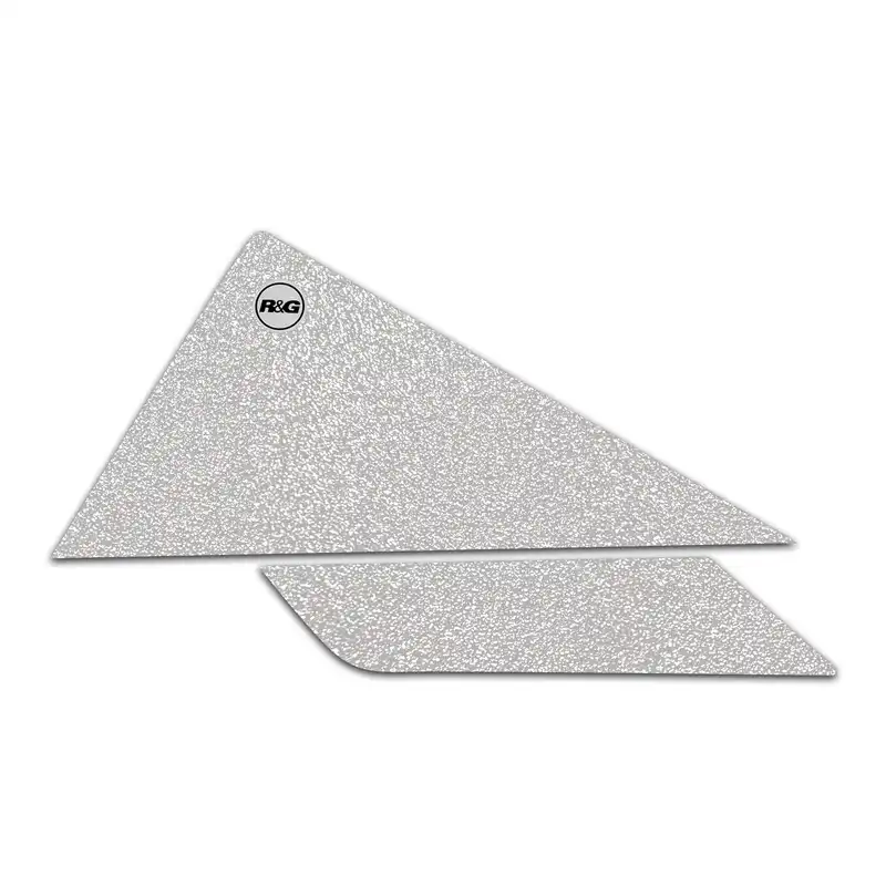 R&G Tank Traction Grip kits are available for many different bike styles and brands, with new applications released regularly. The unique R&G texture was specifically designed to be both soft and durable, providing the rider with the grip and feel he/she needs to assist in better bike control, enabling the rider to maintain a stable body position while cornering and braking, whilst also relieving fatigue and providing the rider with complete confidence allowing him/her to fully focus on the road (or track) ahead instead of slipping and sliding on the tank. Each Tank Traction Grip kit is supplied with precision pre-cut adhesive pieces, designed to fit the intended bike, typically in either 2, 4 or 6 pieces (in total) depending on the shape of the tank and adjoining fairing. The high-strength adhesive backing ensures a highly durable product that will stay exactly where you put it, as well as not affecting or damaging paintwork. Each R&G Tank Traction Grip kit is available in black and ultra-clear finishes to blend into your bike’s paintwork or stand out, depending on your preference. R&G Tank Traction Grips work in both wet and dry conditions and is equally at home on the track as it is on the commute home! Please note: R&G Tank Traction Grips now come with a 25mm diameter stick on emblem. This Tank Traction Grip Kit has been specially designed for KTM 390 Adventure R, 125 SMC R, 390 SMC R, 125 Enduro R & 390 Enduro R '25- (4- piece kit) . Made in the UK.