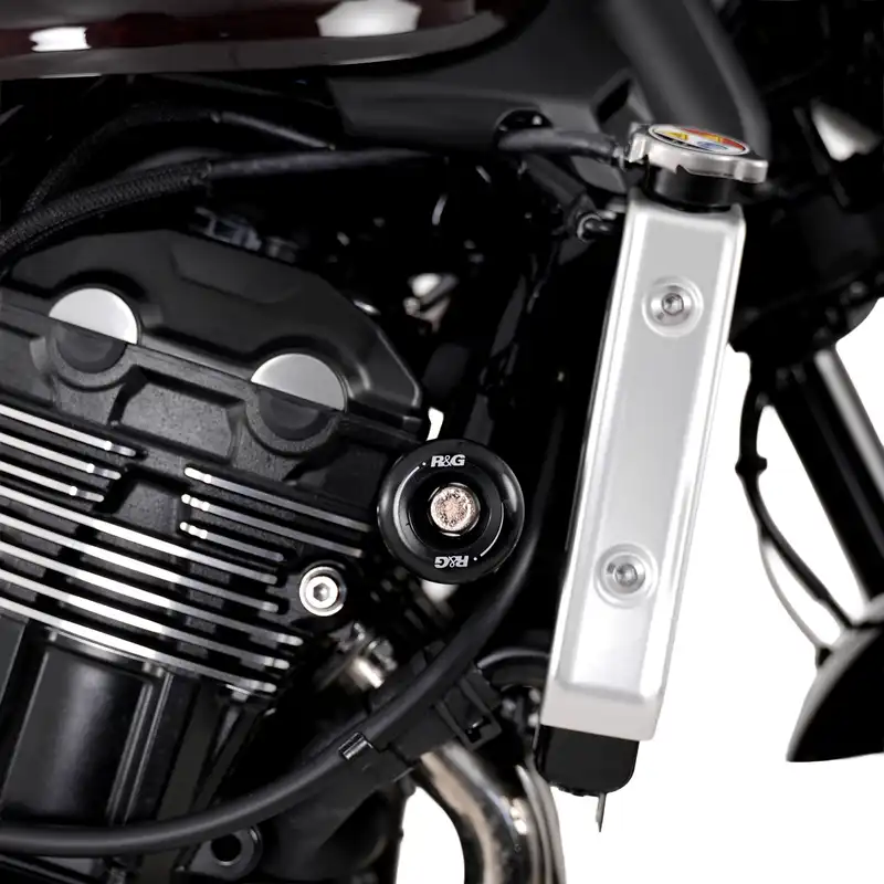 Suitable for the Kawasaki Z900 RS '18- models. R&G Classic Crash protectors offers core motorcycle protection, keeping the frame, engine and other critical components off the ground in the event of a crash or slide.