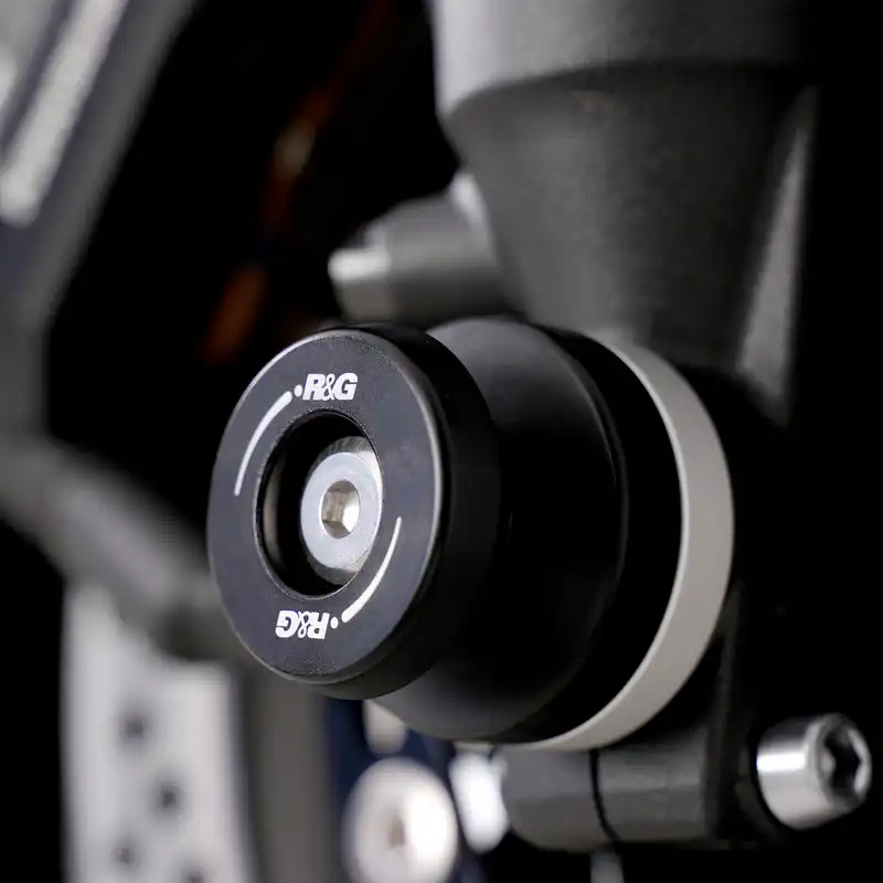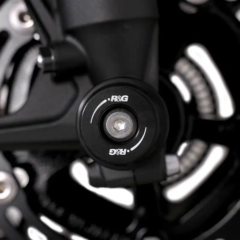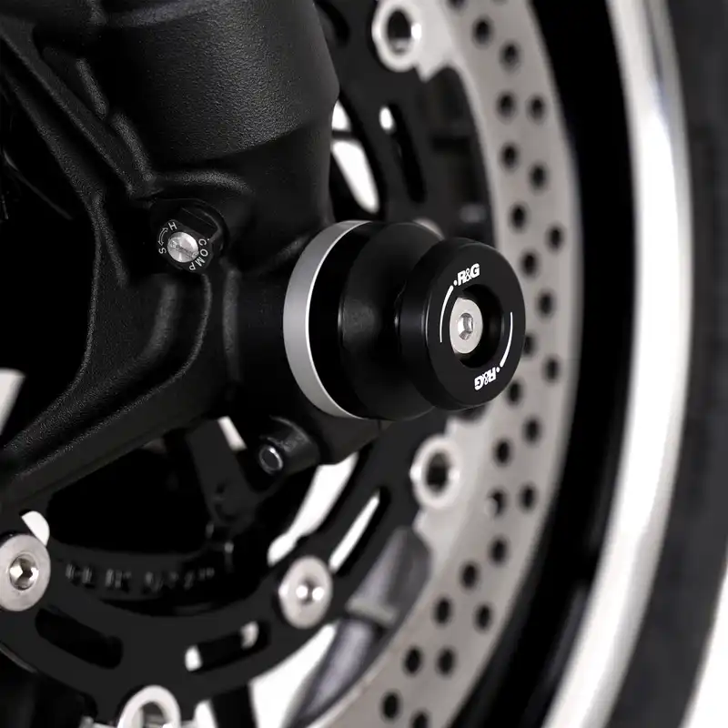 Easy to install, they help to eliminate damage to the front forks, fork bottoms and brake callipers during a crash or drop. This model also comes supplied with spacers for the front wheel to cover the exposed front wheel spindle visible between the fork and wheel.