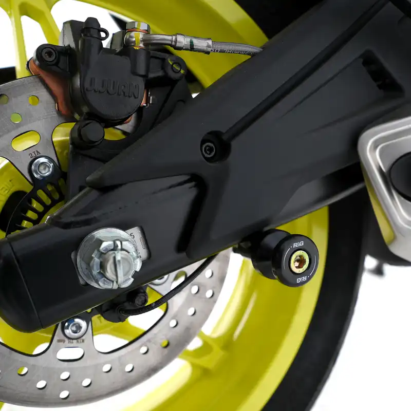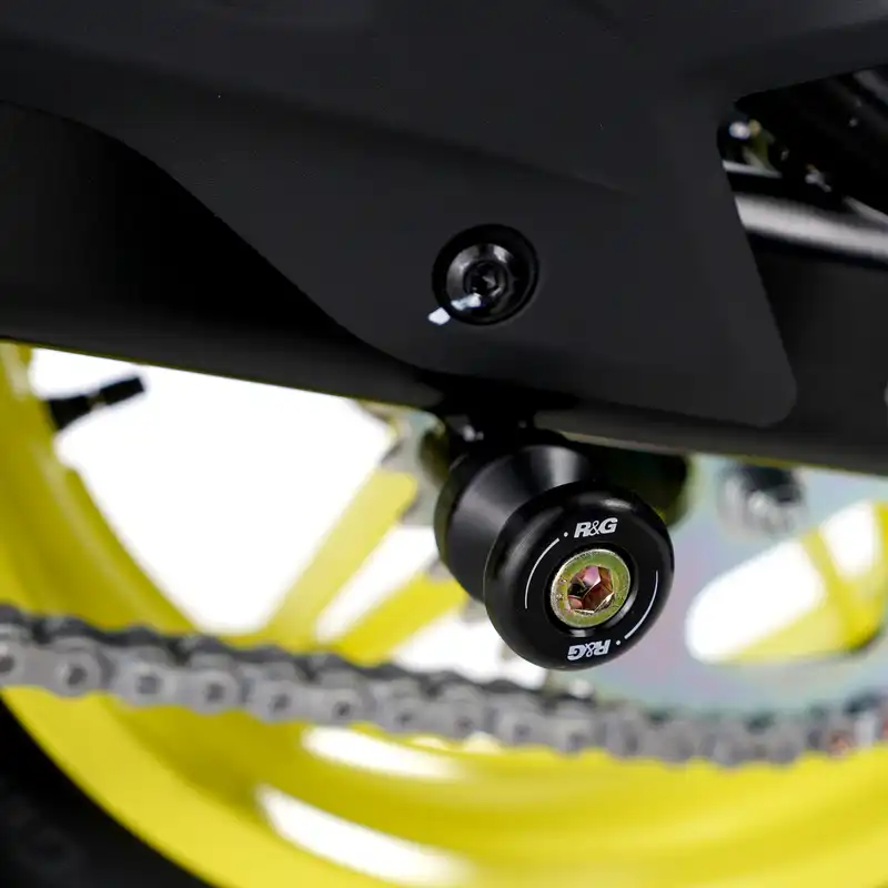 Cotton Reels are large paddock-stand supports that thread into the mounting points on your swingarm, giving you a secure and reliable lifting point while also helping protect the swingarm itself in the event of a slide or drop.