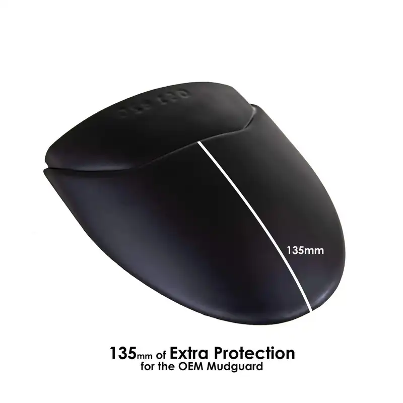 The R&G Fender Extender provides a durable, long-lasting extension to your motorcycle’s front mudguard, helping to shield exhaust headers, the lower engine area, and the radiator from dirt, debris, and stone damage. Designed to follow the natural contour of the front guard, it blends seamlessly with the bike’s styling.